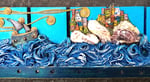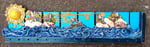 ITA: Quadro nel mio assemblaggio creativo realizzato su asse orizzontale. Rappresenta un viaggio in mare, passando da varie isole.. I materiali utilizzati sono come sempre un mix fra legno (le casine del villaggio), spago (onde del mare), vetri colorati, specchietti, accessori vari , il tutto armoniosamente integrato nella mia tecnica che mescola mosaico assemblaggio e pittura.
