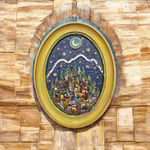 Quadro realizzato dentro una cornice dorata antica. Rappresenta un paesaggio dalle atmosfere fiabesche. Le piccole case sono tutte in legno, dipinte una ad una ed assemblate successivamente. Il quadretto è realizzato nella mia tecnica mista di mosaico ed assemblaggio di legno vetro, specchietti, metallo, piccoli accessori. Gancio applicato sul retro per appendere il quadro al muro.