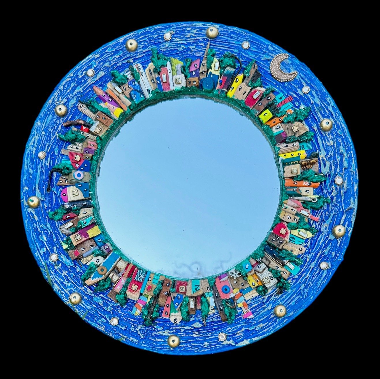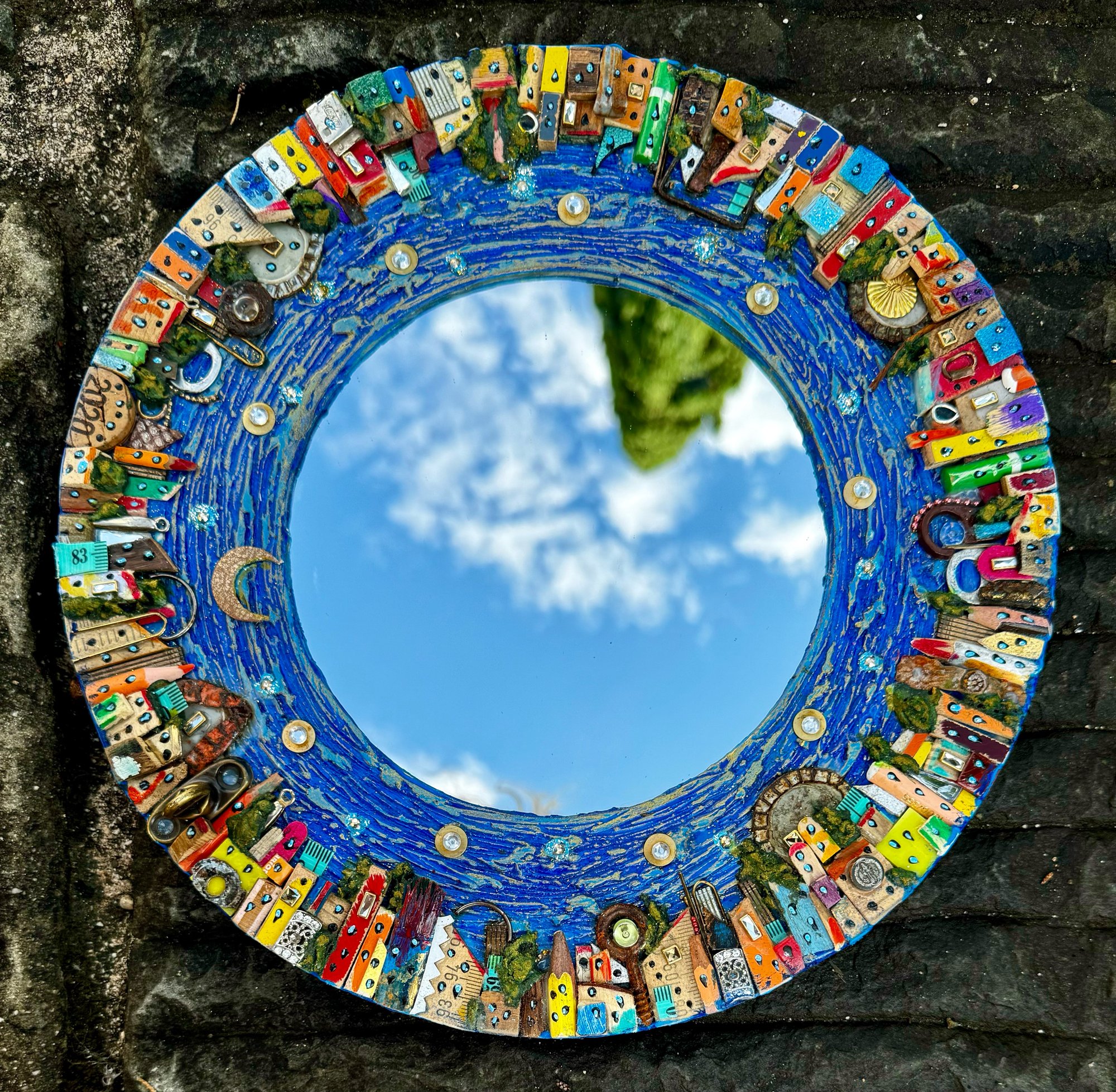 ENG: 2 collector's mirrors in my beloved assembly technique in which I recover the most disparate objects and turn them into buildings, houses, street lamps,...Squint your eyes and you will see them transform too! 😉 ❤️