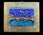 The wooden base is treated with stucco and acrylic paint to create a luminous night and a sparkling, flowing Arno River. Measures 25 x 30 cm, with a hook already attached to the back.