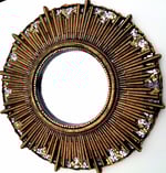 ENG A small mirror frame with a very bright mosaic decoration with gold leaf glass, mirrors and metal. This has a diameter of 25 cm, hook on the back.