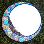 ENG. A small precious mirror with a very detailed glass and mirrors mosaic work on the moon. The little houses are instead made by assembling small pieces of recycled wood, each hand painted. There are 2 sizes available.